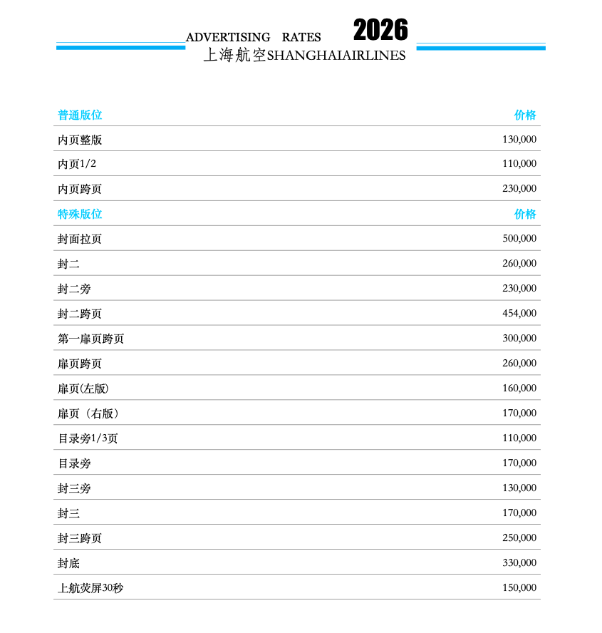 上海航空平均每年接送600余万乘客,其中《上海航空》的读者人次为550万。调查显示《上海航空》杂志的的读者以高收入,商务高层决策
