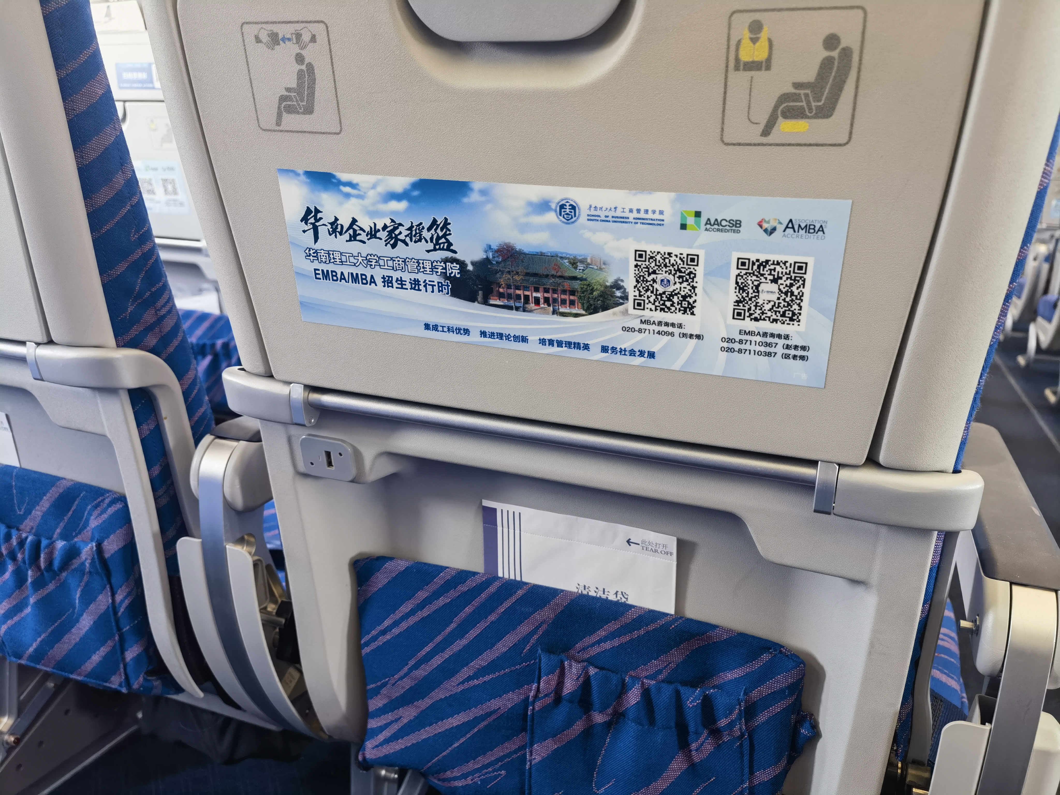 华南理工大学工商管理学院在南航小桌板的广告投放效果显著,成功传递了学院品牌形象、项目特色及优势信息。