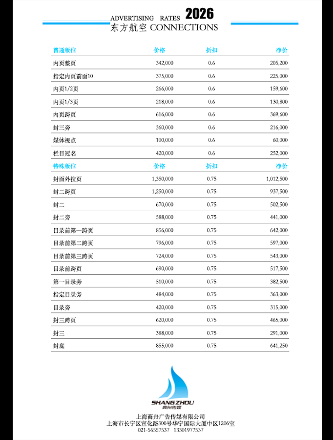 2026年东方航空杂志广告刊例
