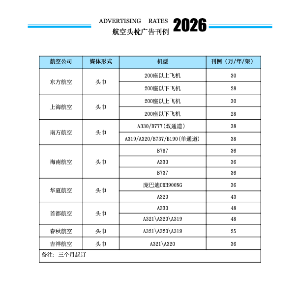 导读:航空广告、东航头巾、南航头巾、国航头巾广告新刊例