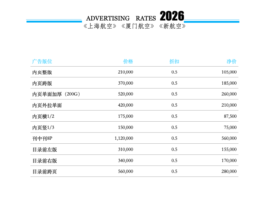 集合上海航空、厦门航空、山东航空多家航空资源,广告受众覆盖面广。